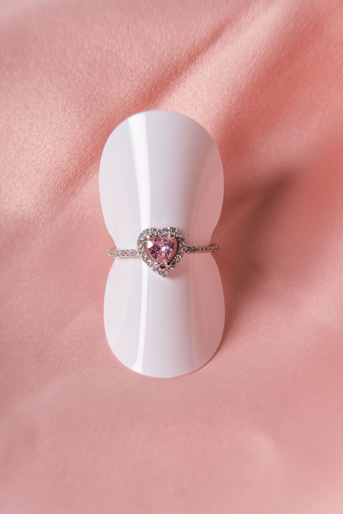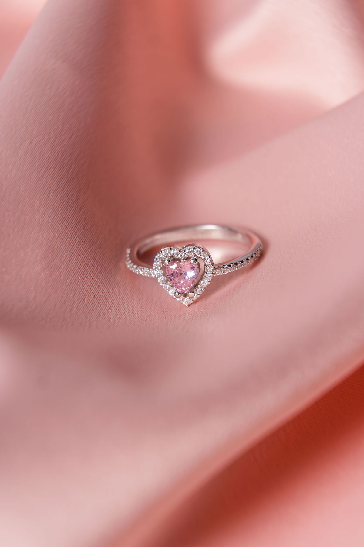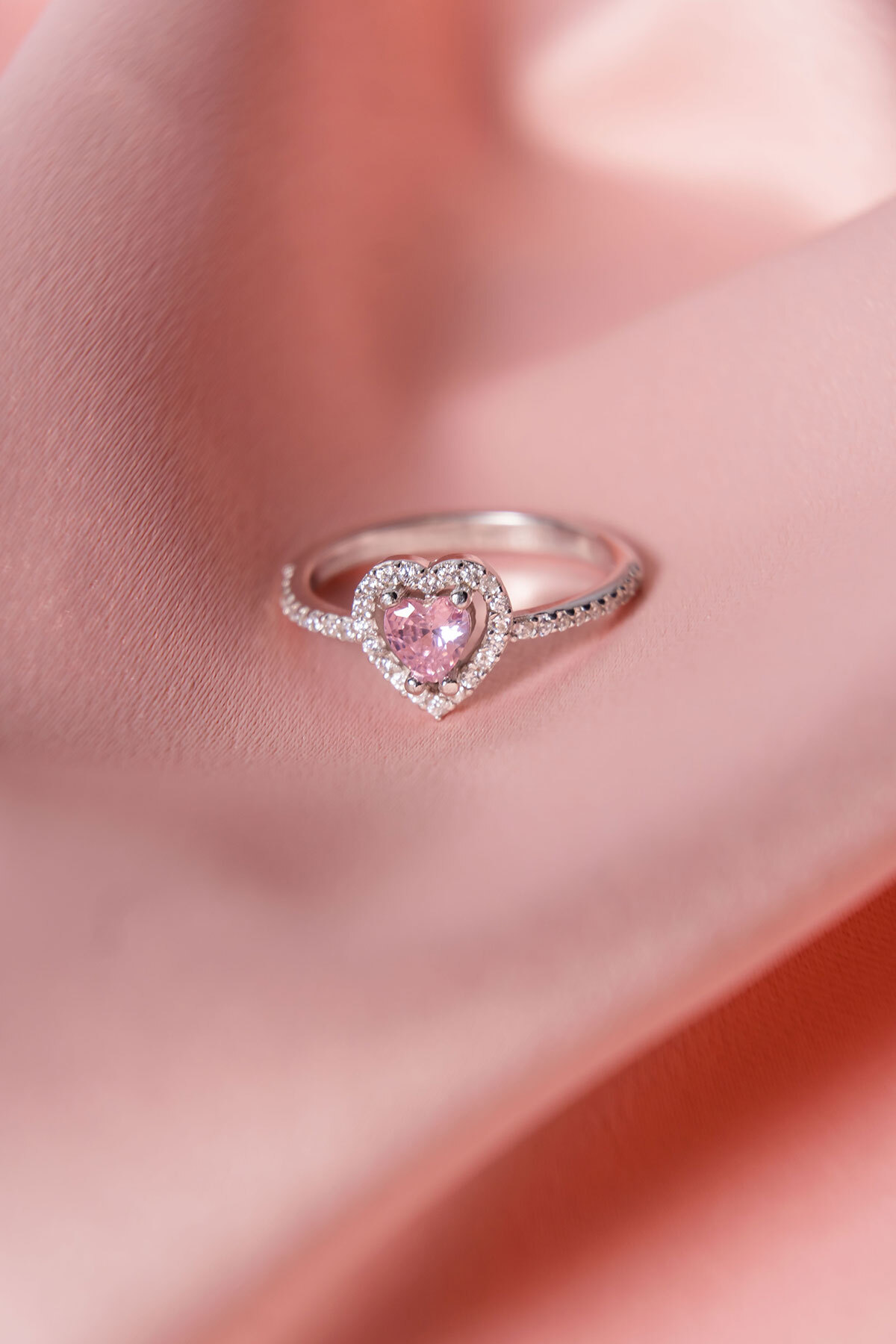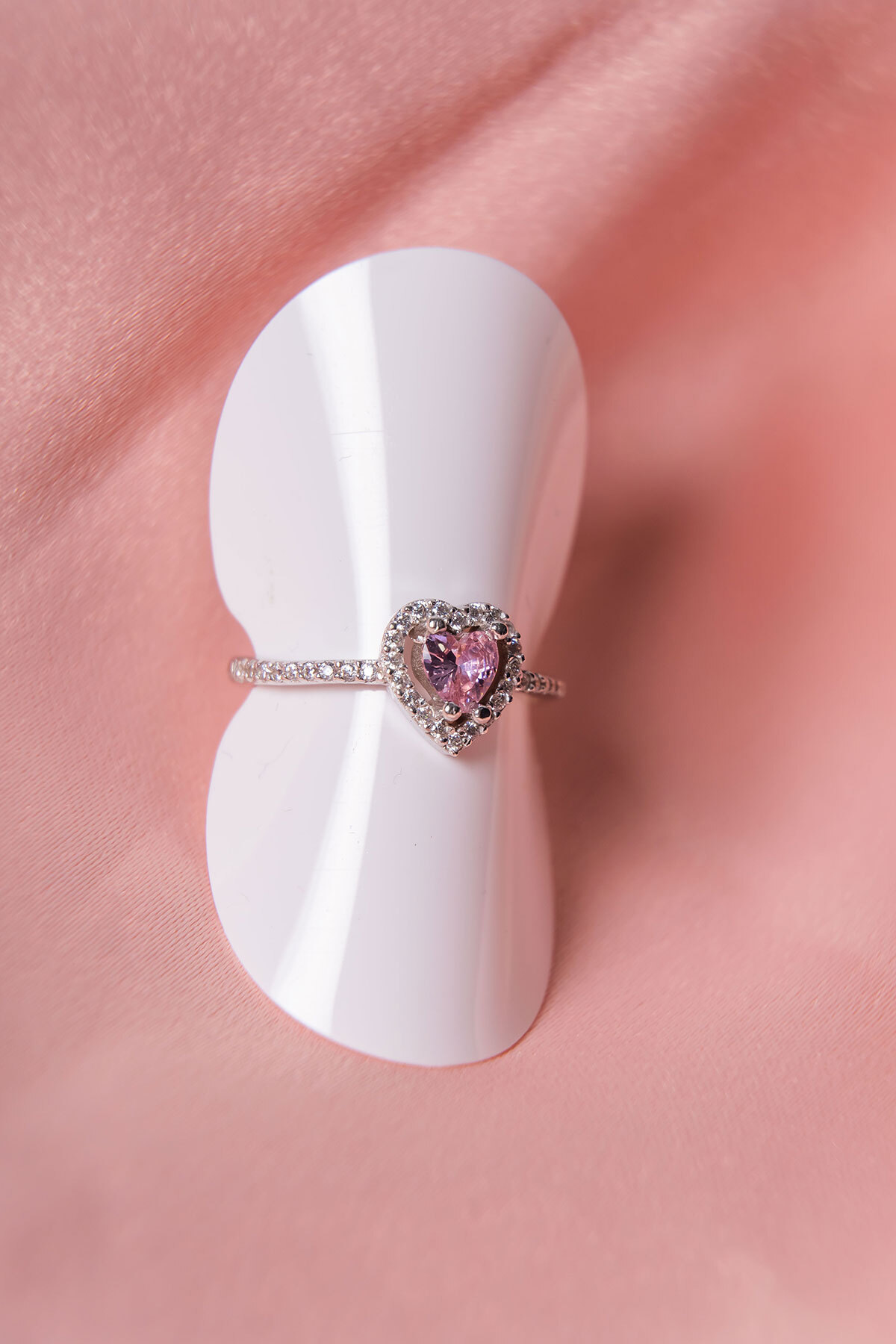Zirkon Taşlı Pembe Renk Kalp Detaylı Gümüş Yüzük Silver 925 Ayar Gümüş