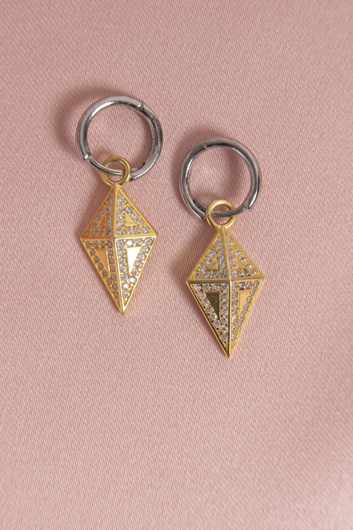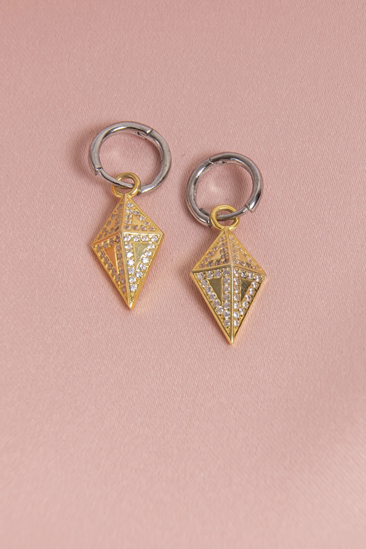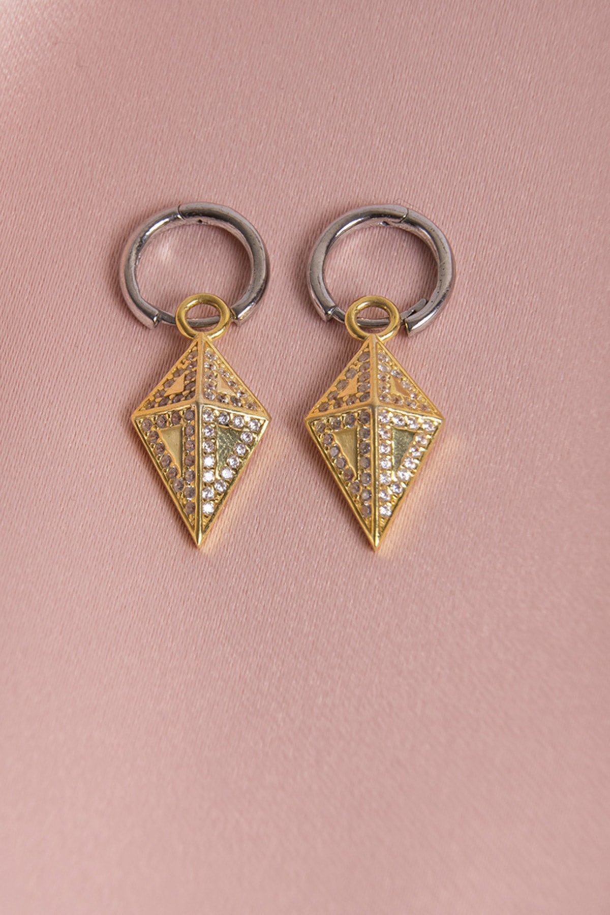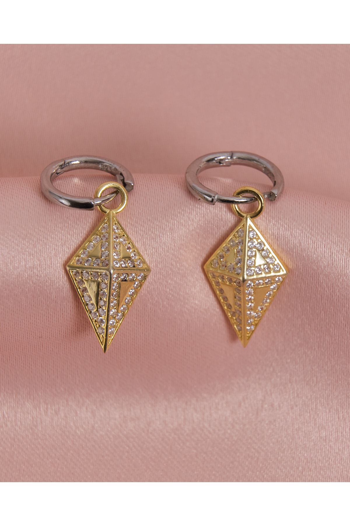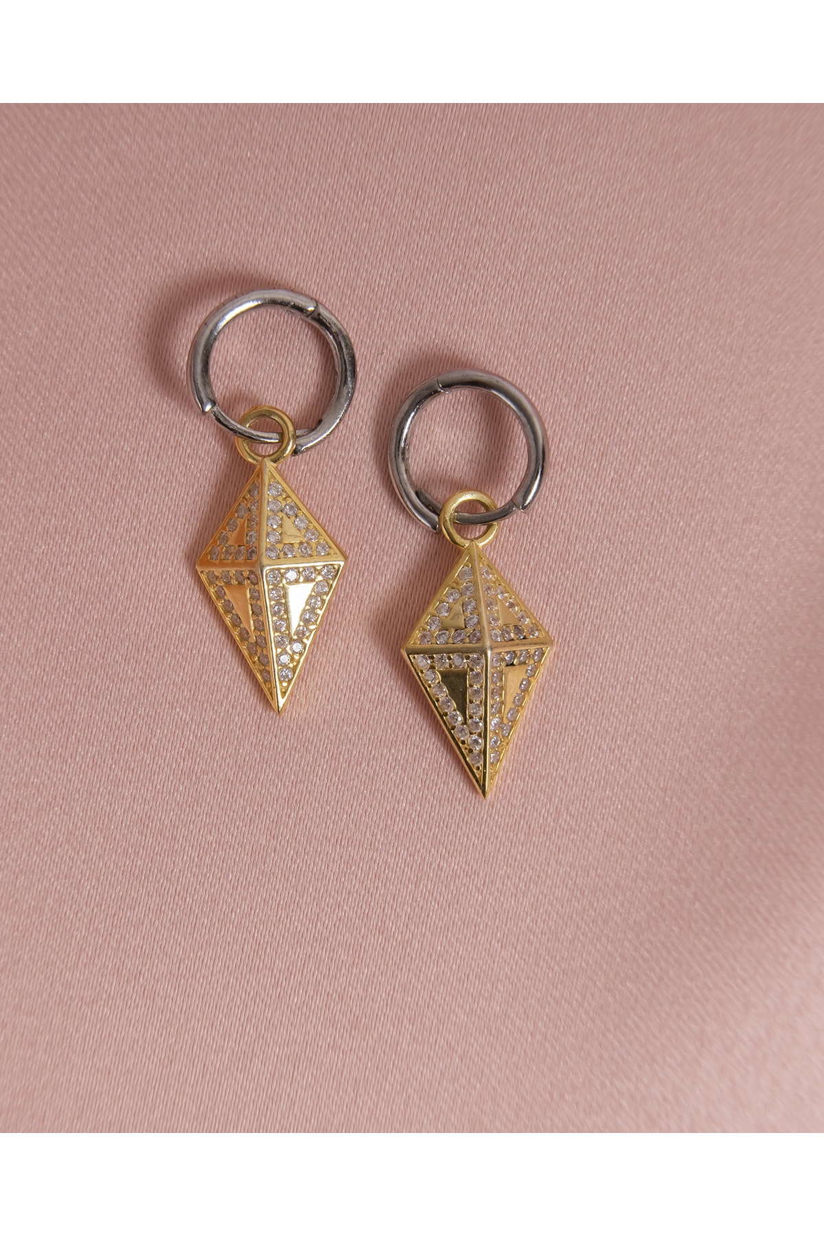 Zirkon Taşlı Sallantılı Etnik Desenli Gümüş Küpe Gold Kaplama Anti Alerjik 925 Ayar Gümüş