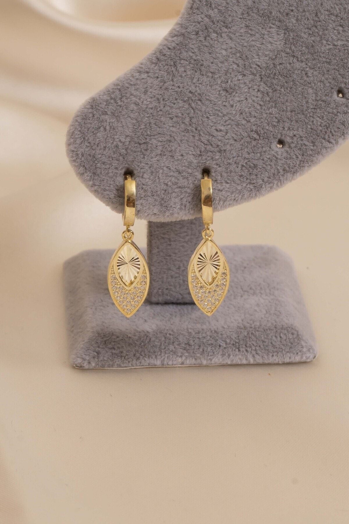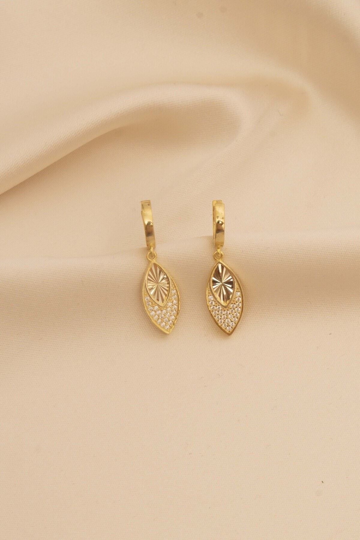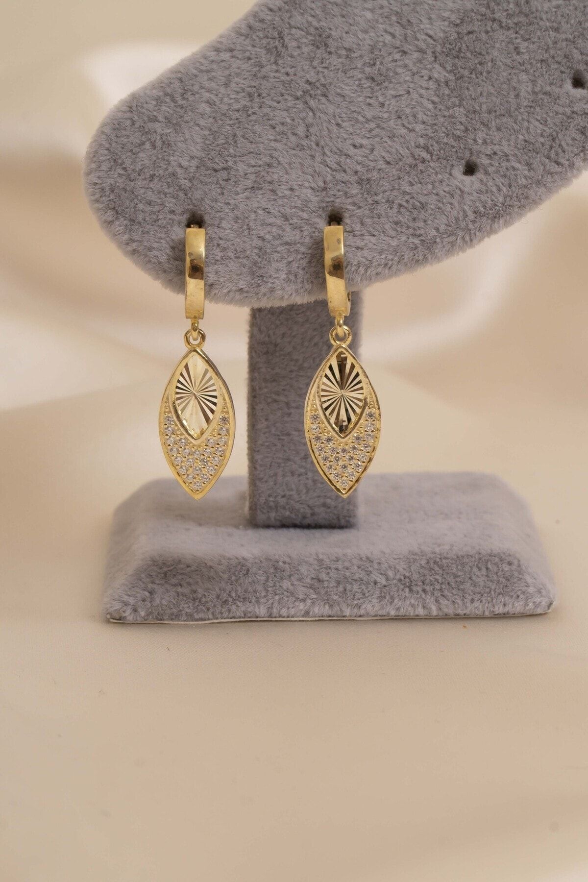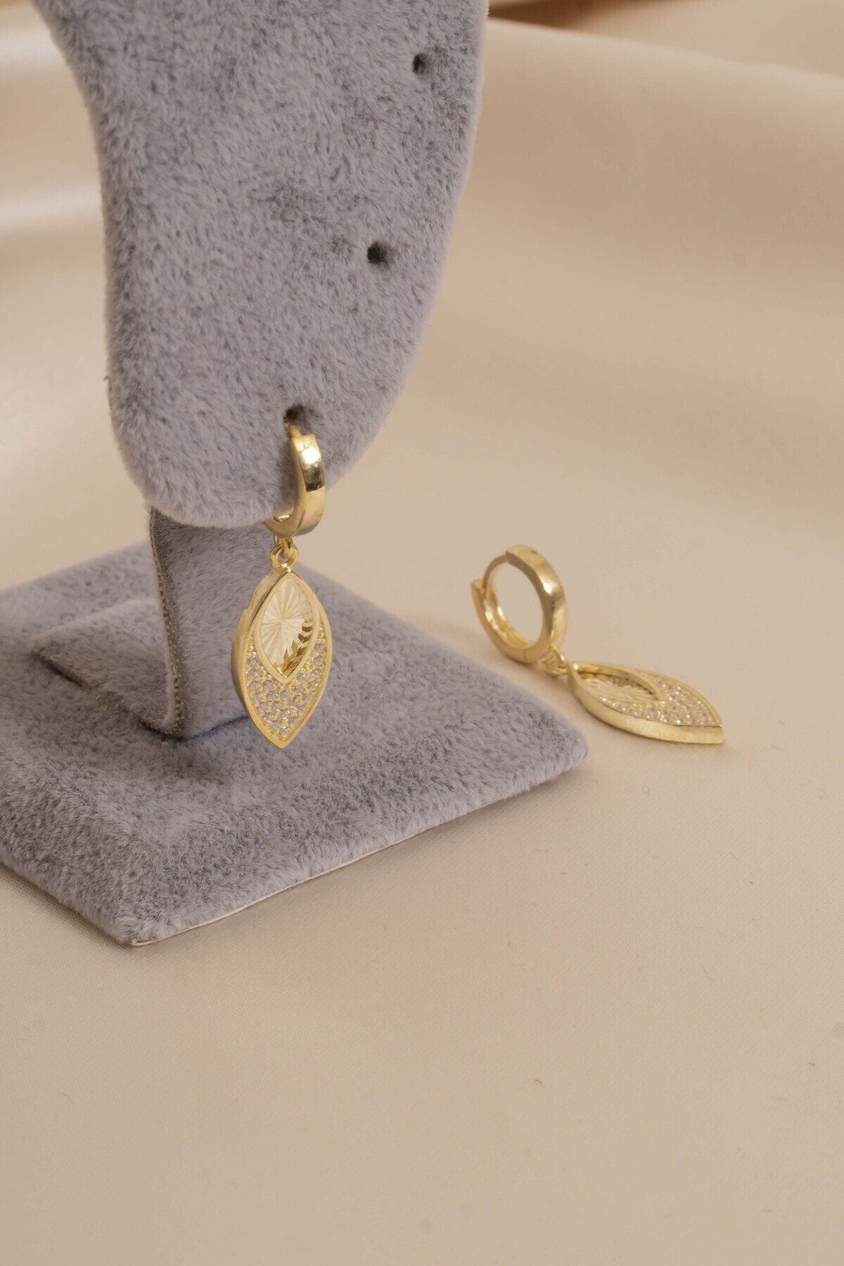 Zirkon Taşlı Sallantılı Işıltılı Oval Gümüş Küpe Gold Kaplama Anti Alerjik 925 Ayar Gümüş