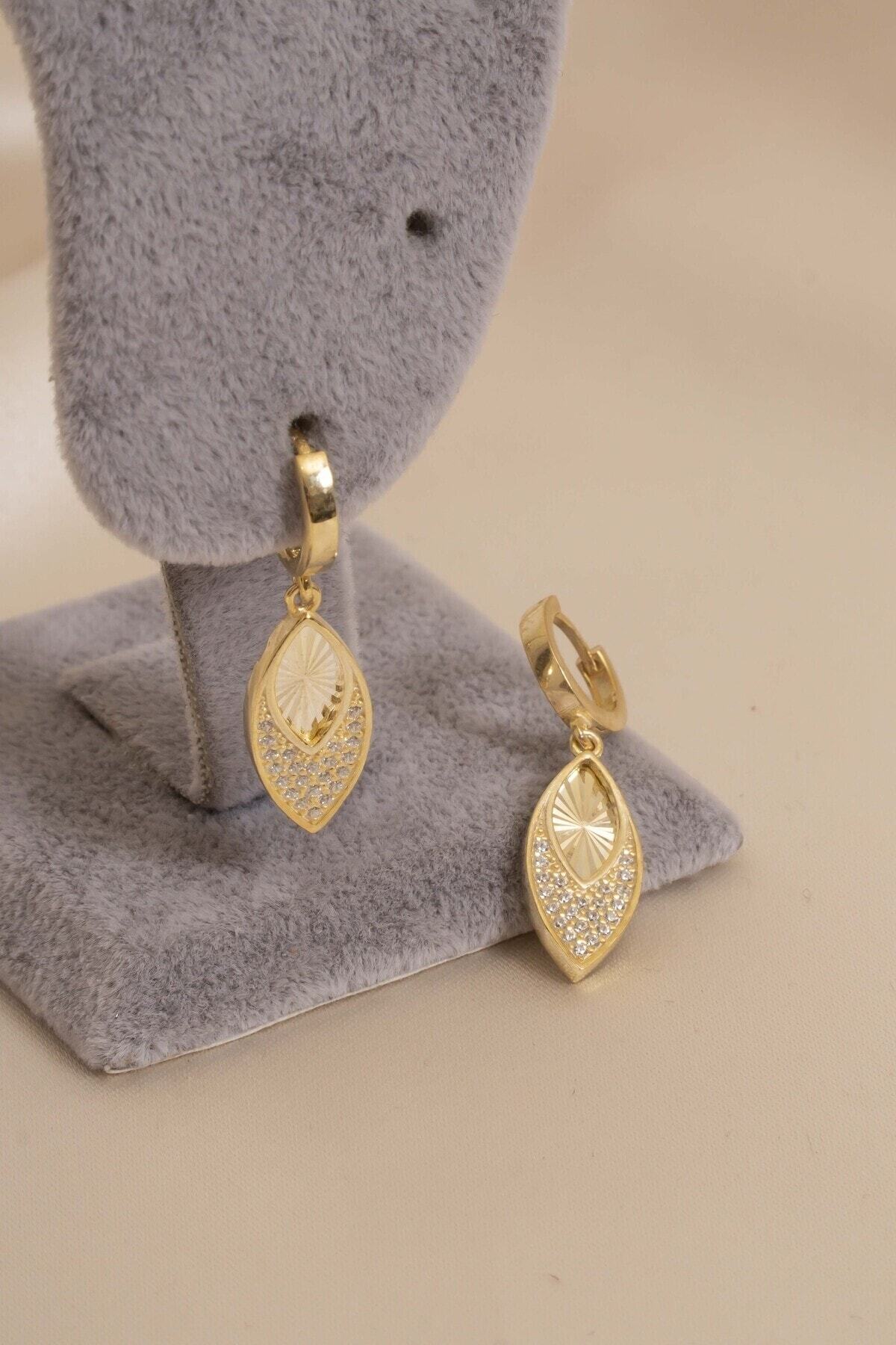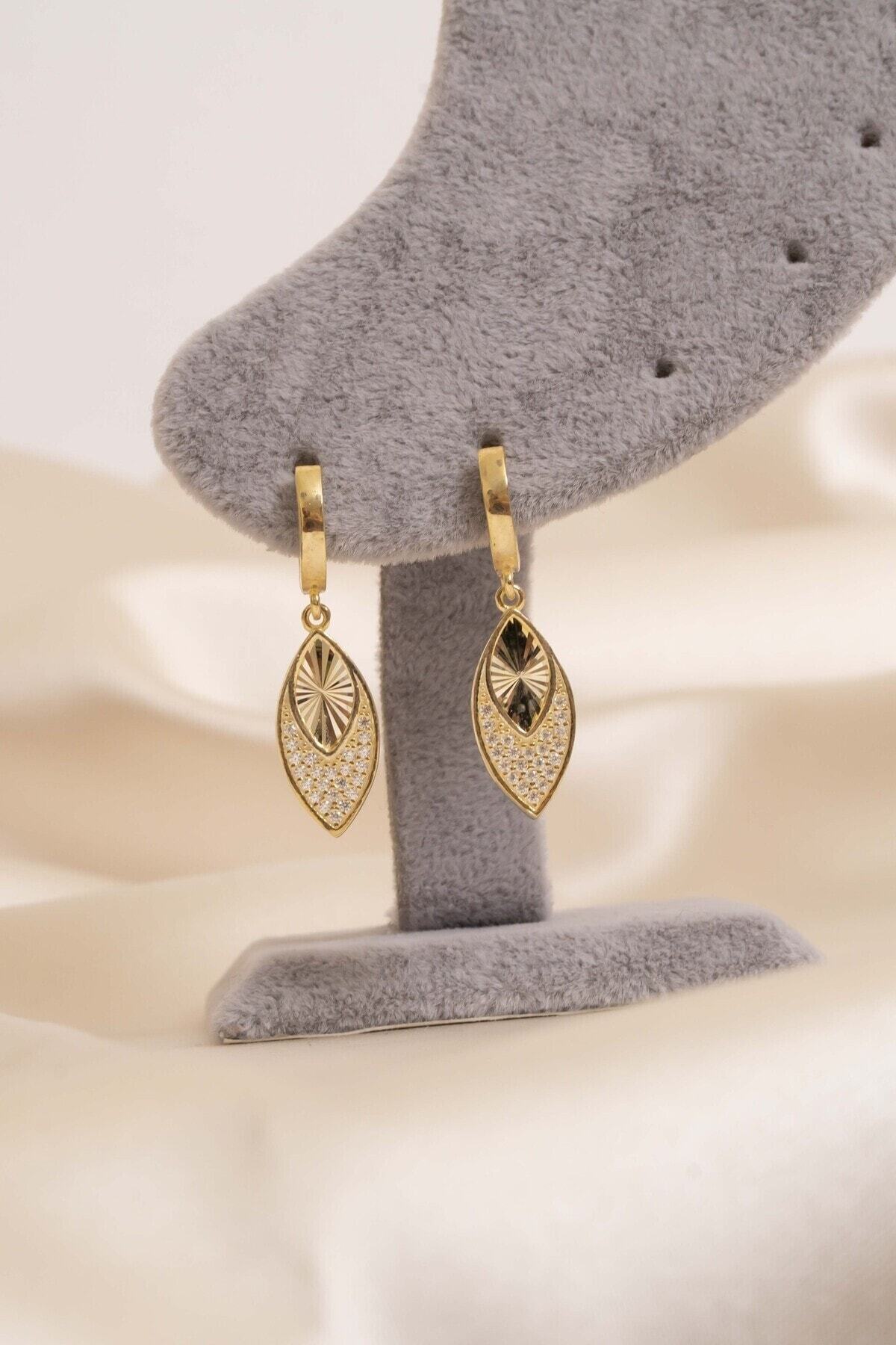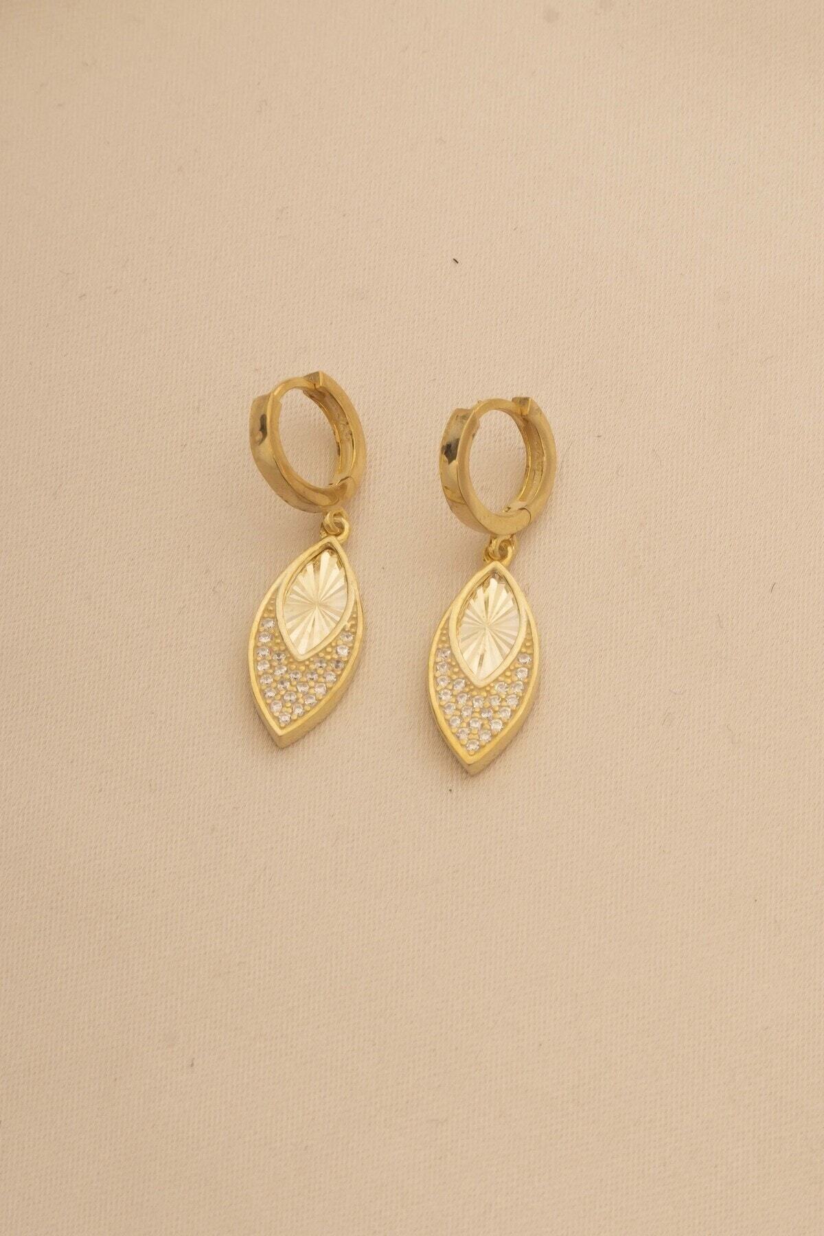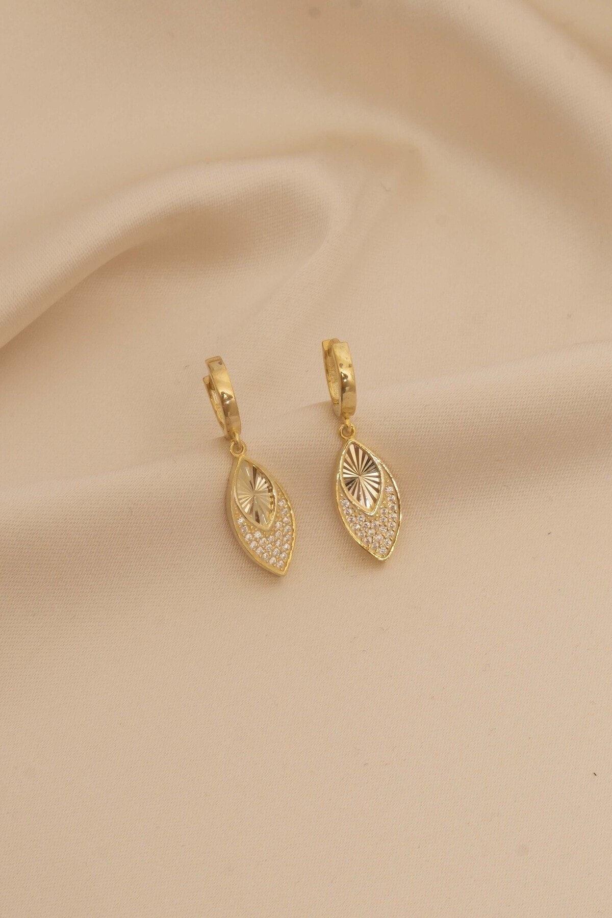 Zirkon Taşlı Sallantılı Işıltılı Oval Gümüş Küpe Gold Kaplama Anti Alerjik 925 Ayar Gümüş