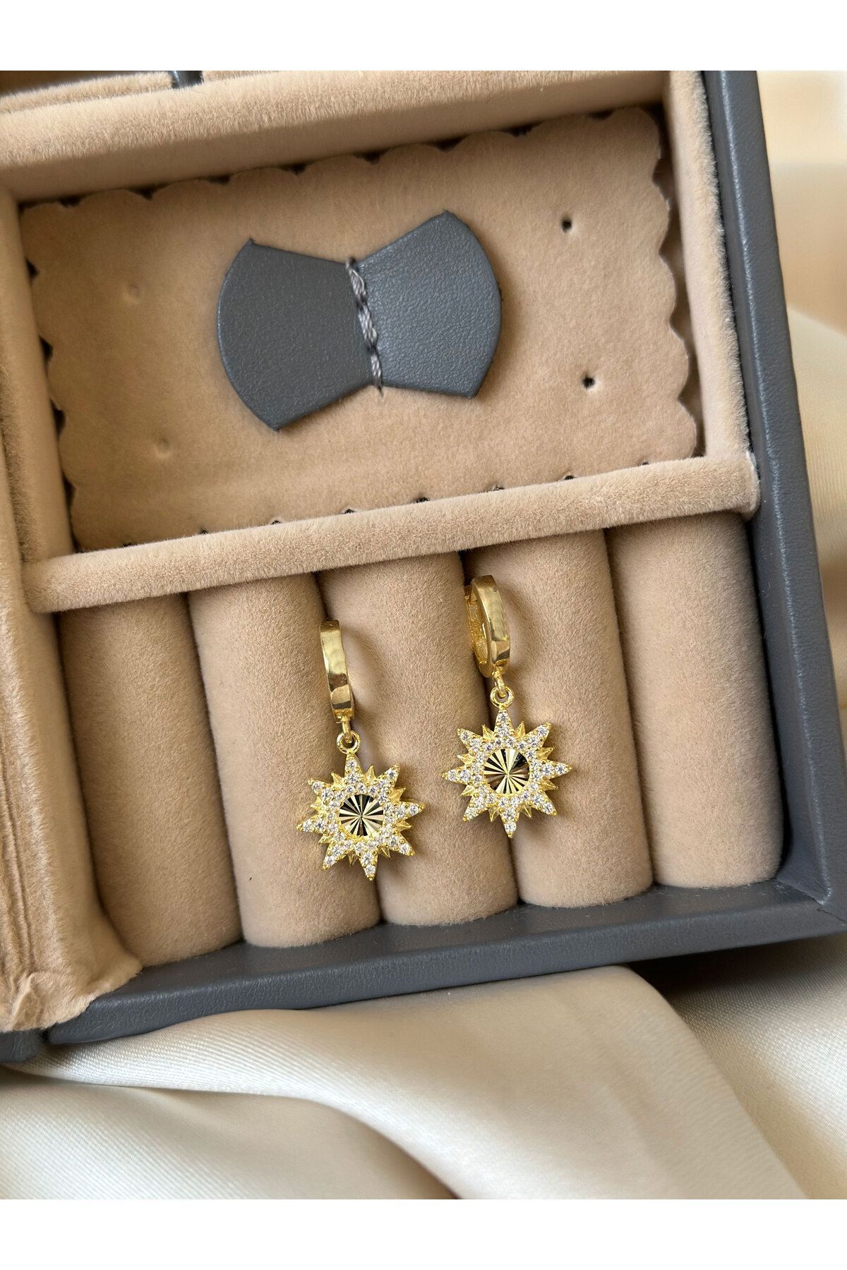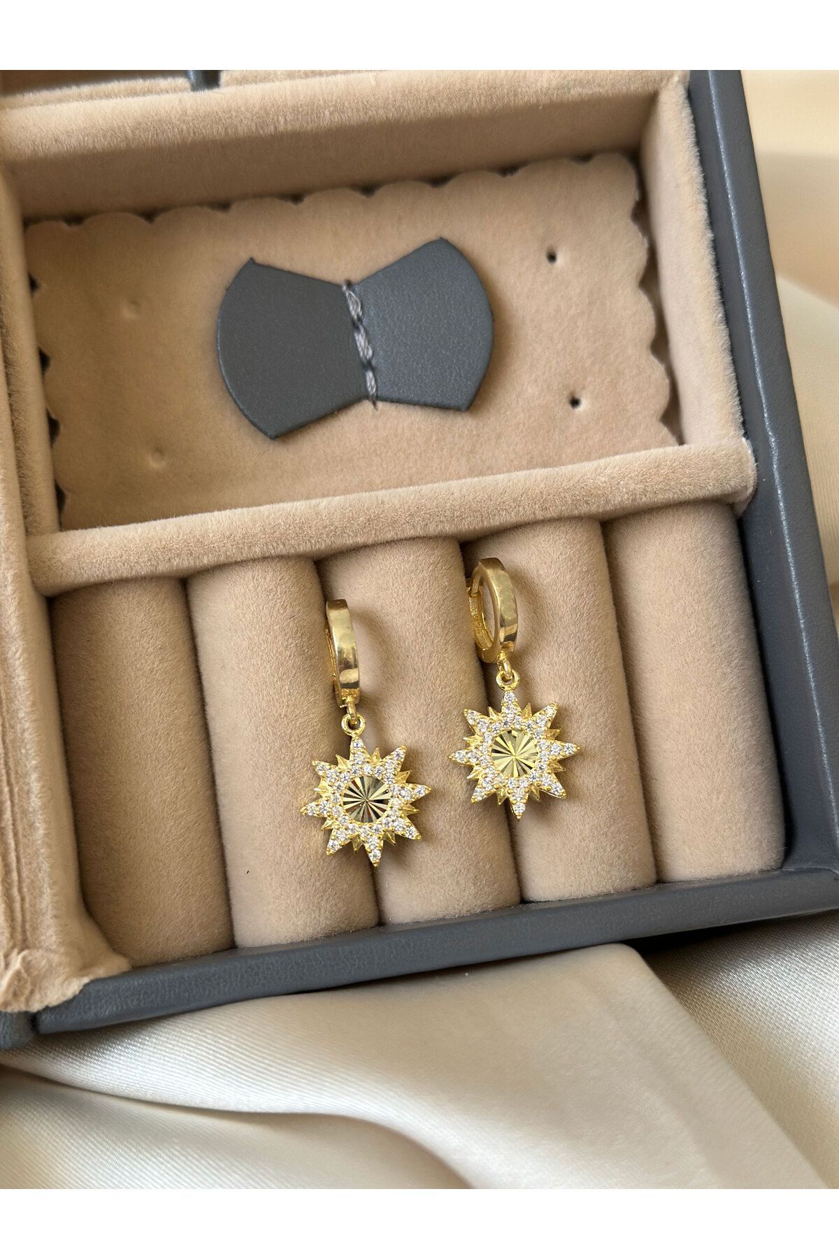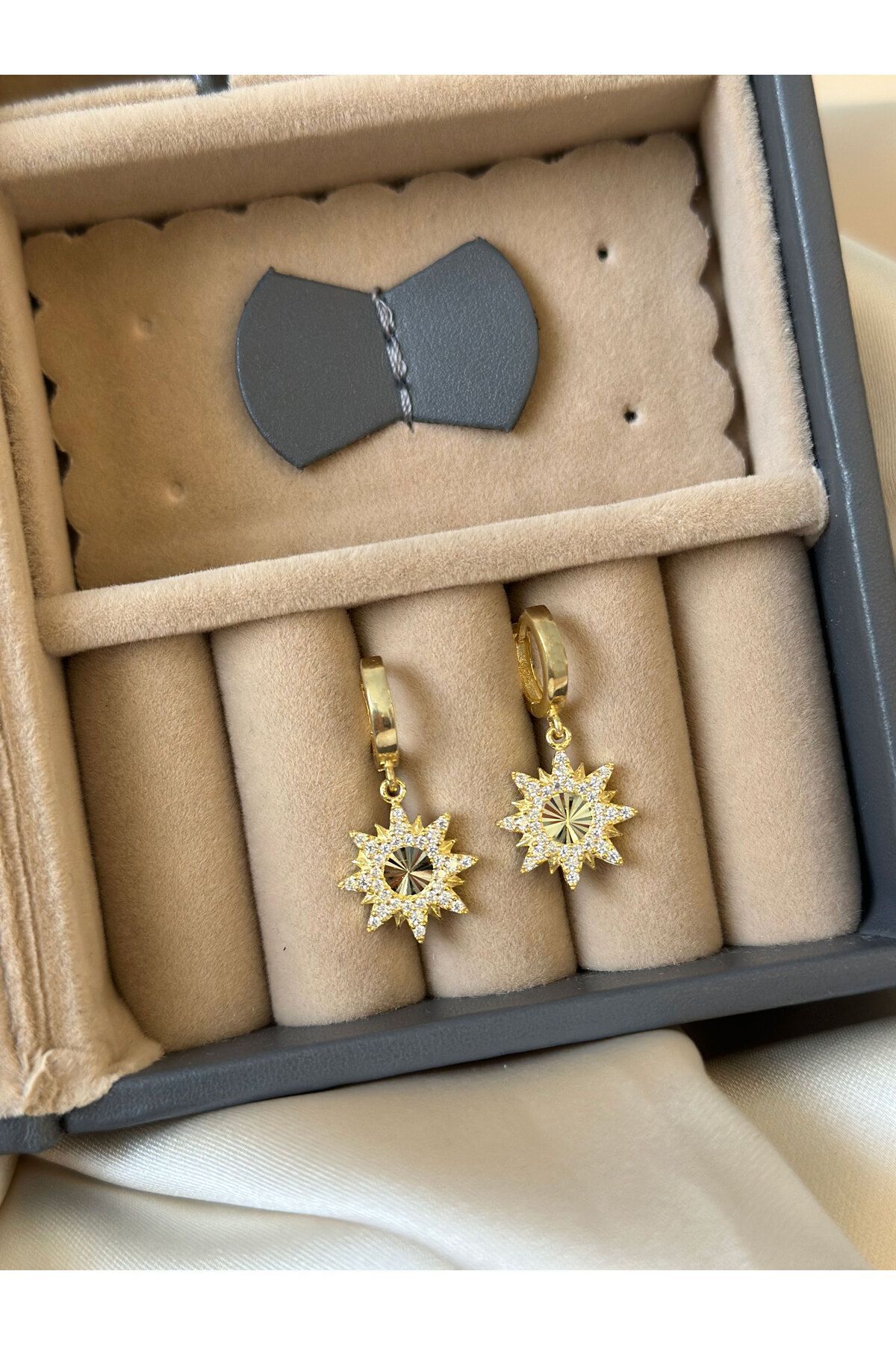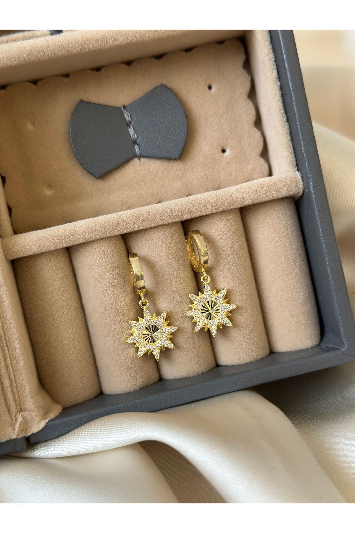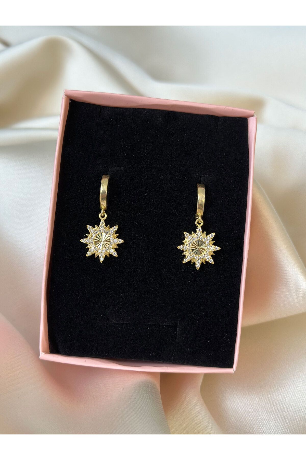 Zirkon Taşlı Sallantılı Yıldız Küpe Gold Kaplama Anti Alerjik 925 Ayar Gümüş