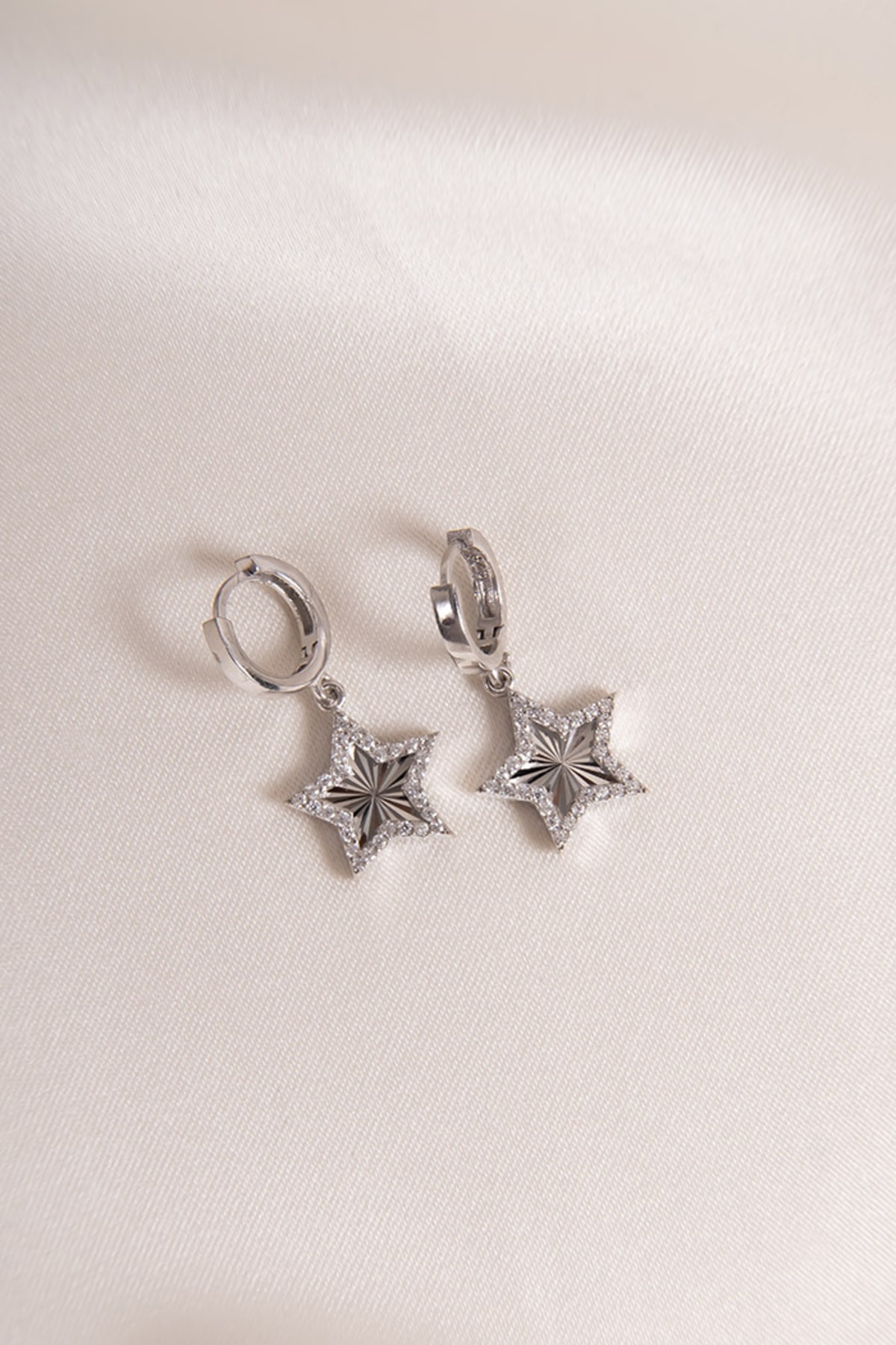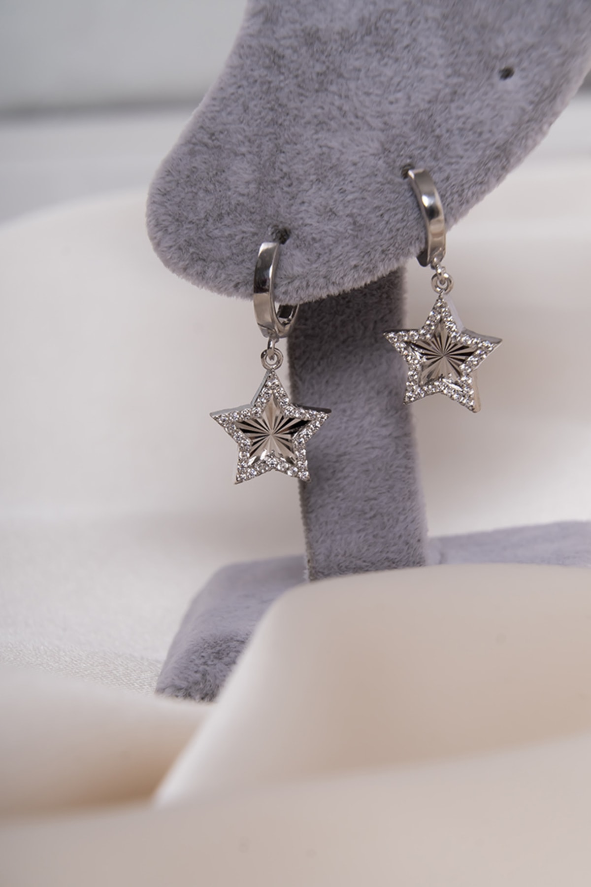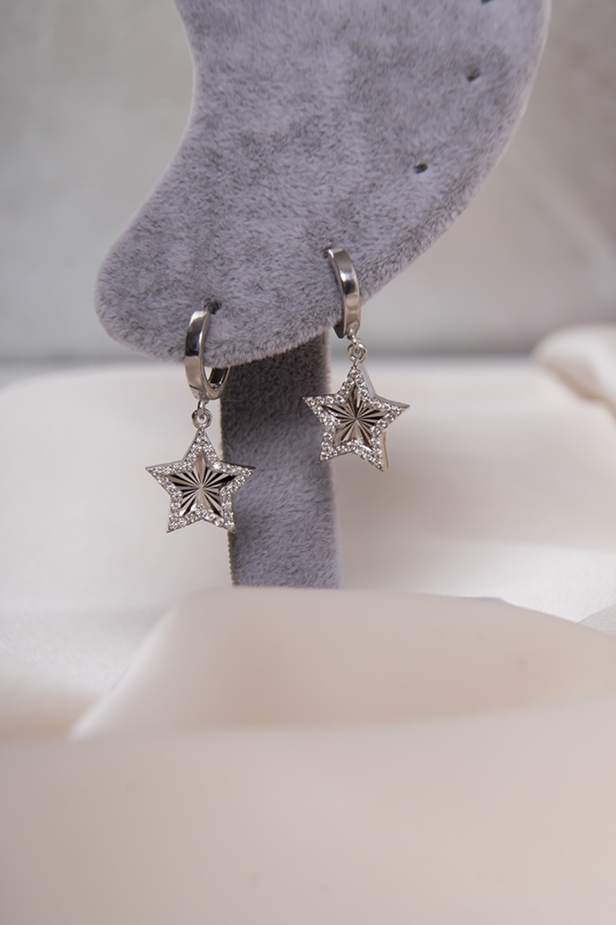 Zirkon Taşlı Sallantılı Yıldız Küpe Silver Anti Alerjik 925 Ayar Gümüş