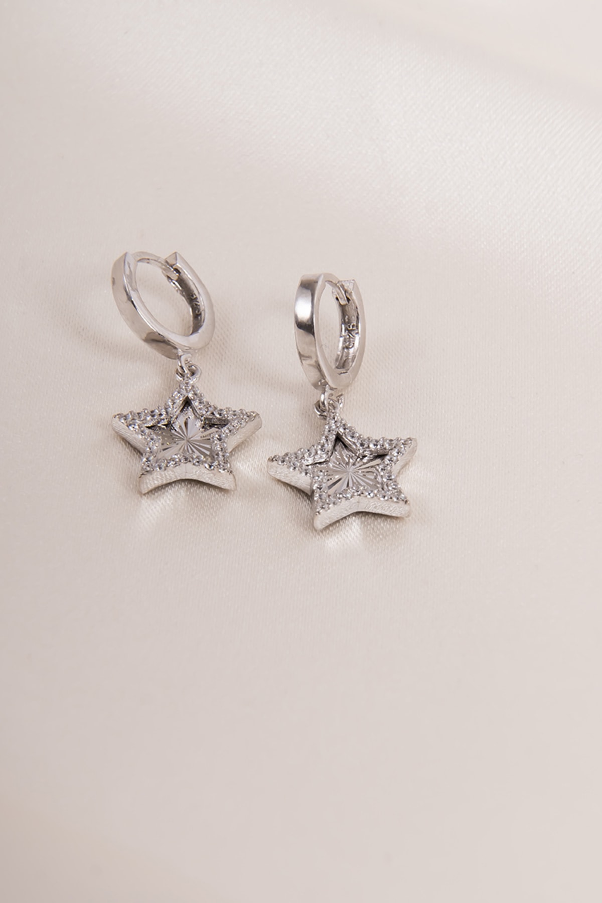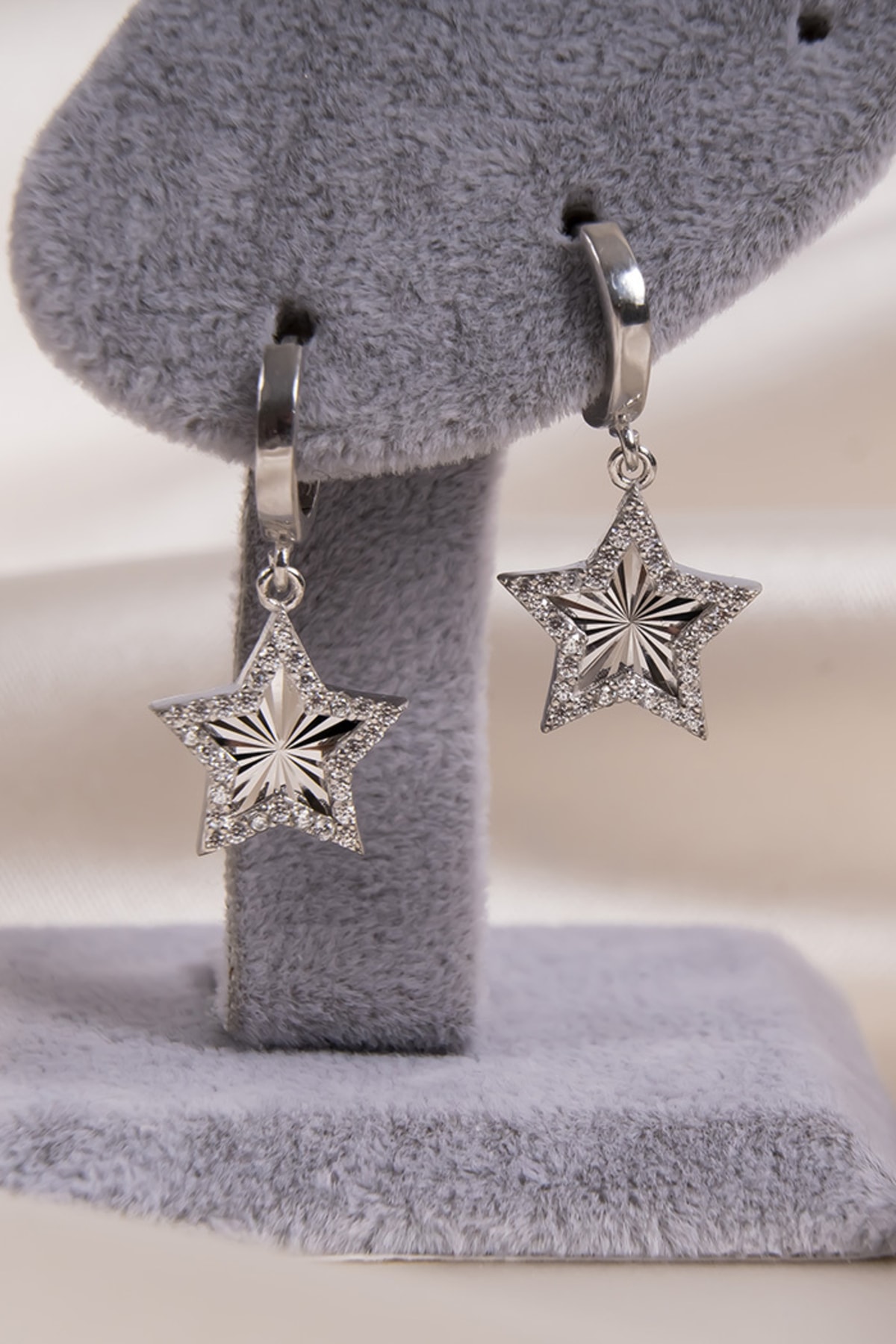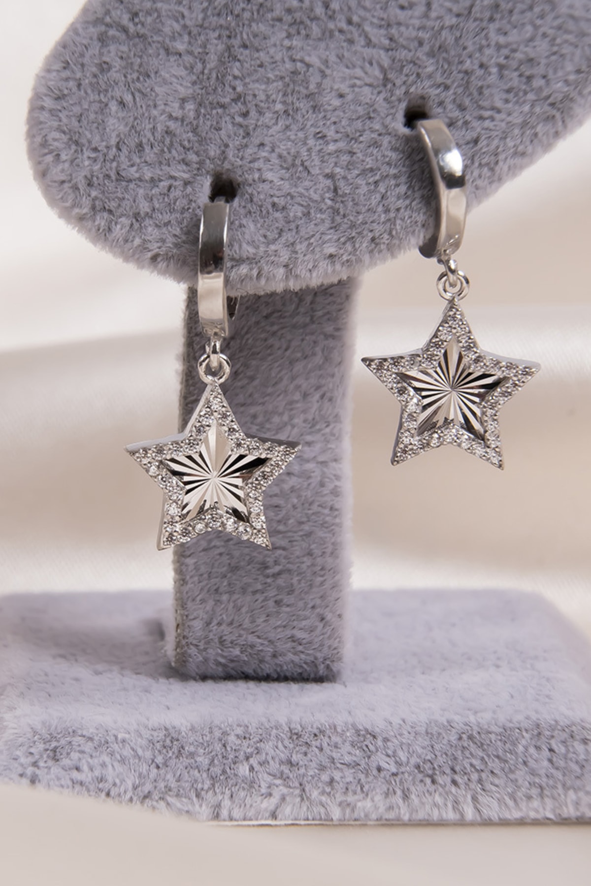 Zirkon Taşlı Sallantılı Yıldız Küpe Silver Anti Alerjik 925 Ayar Gümüş