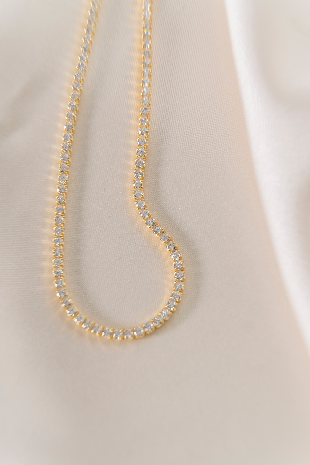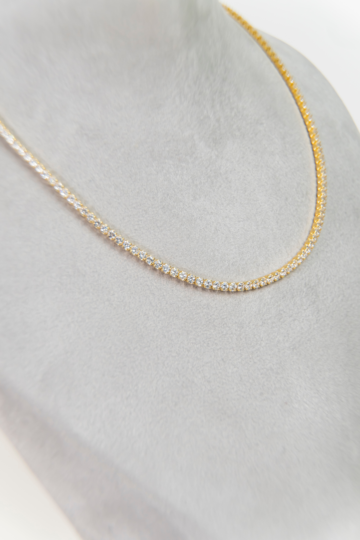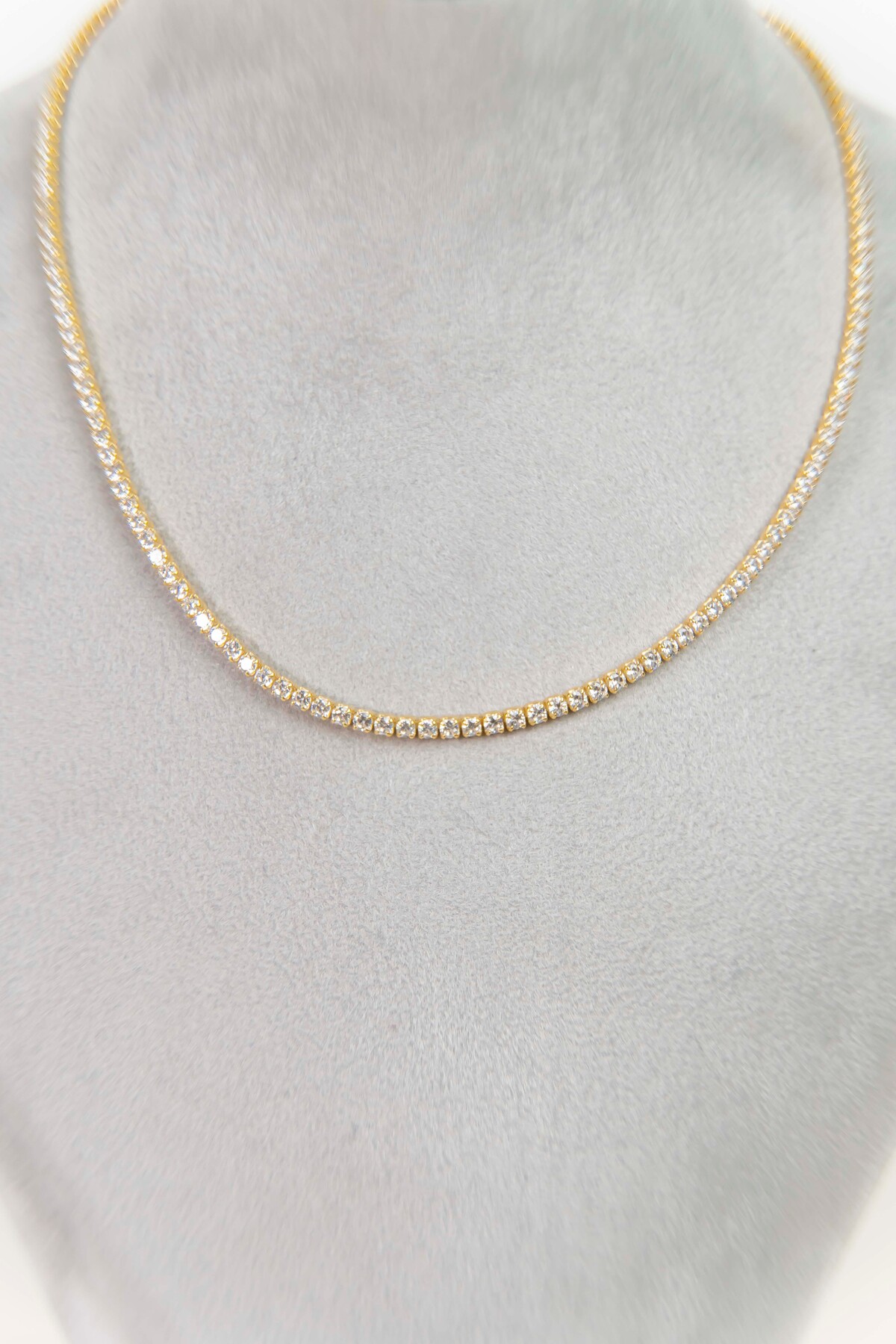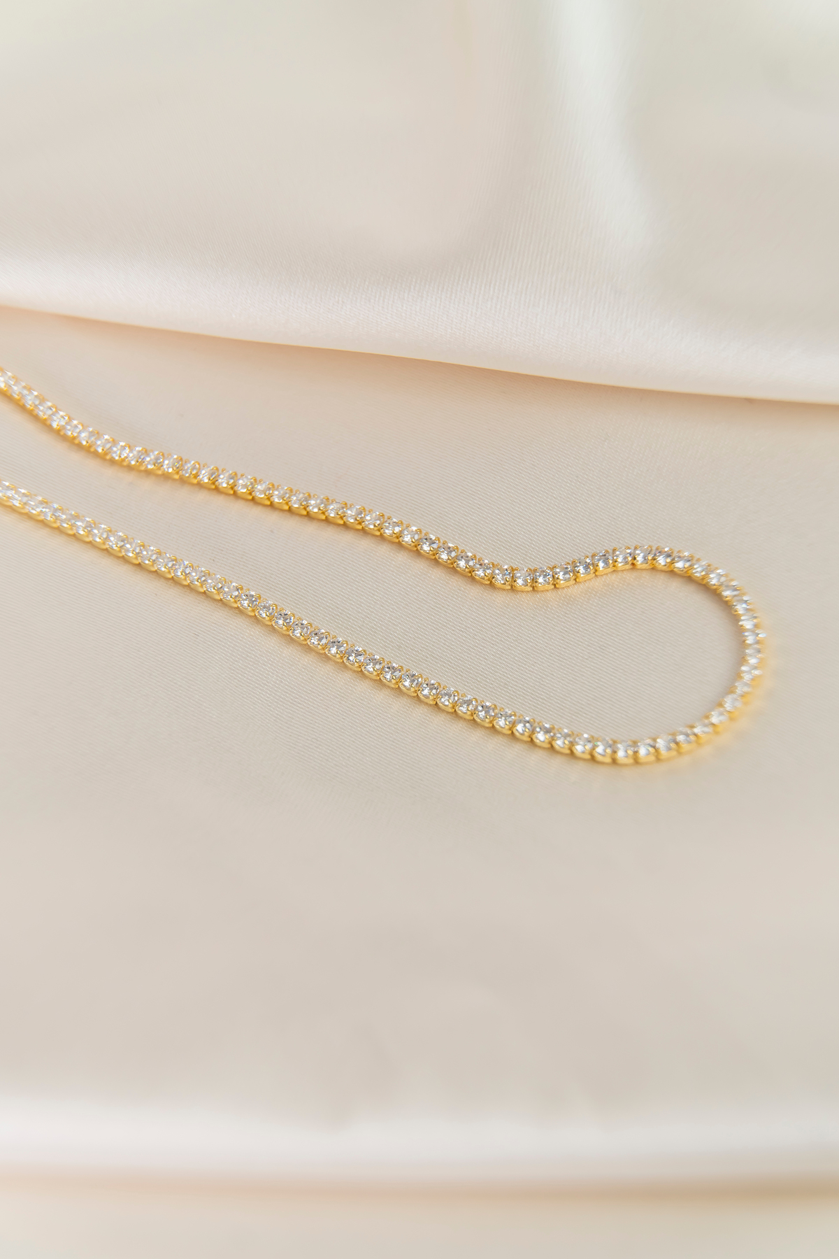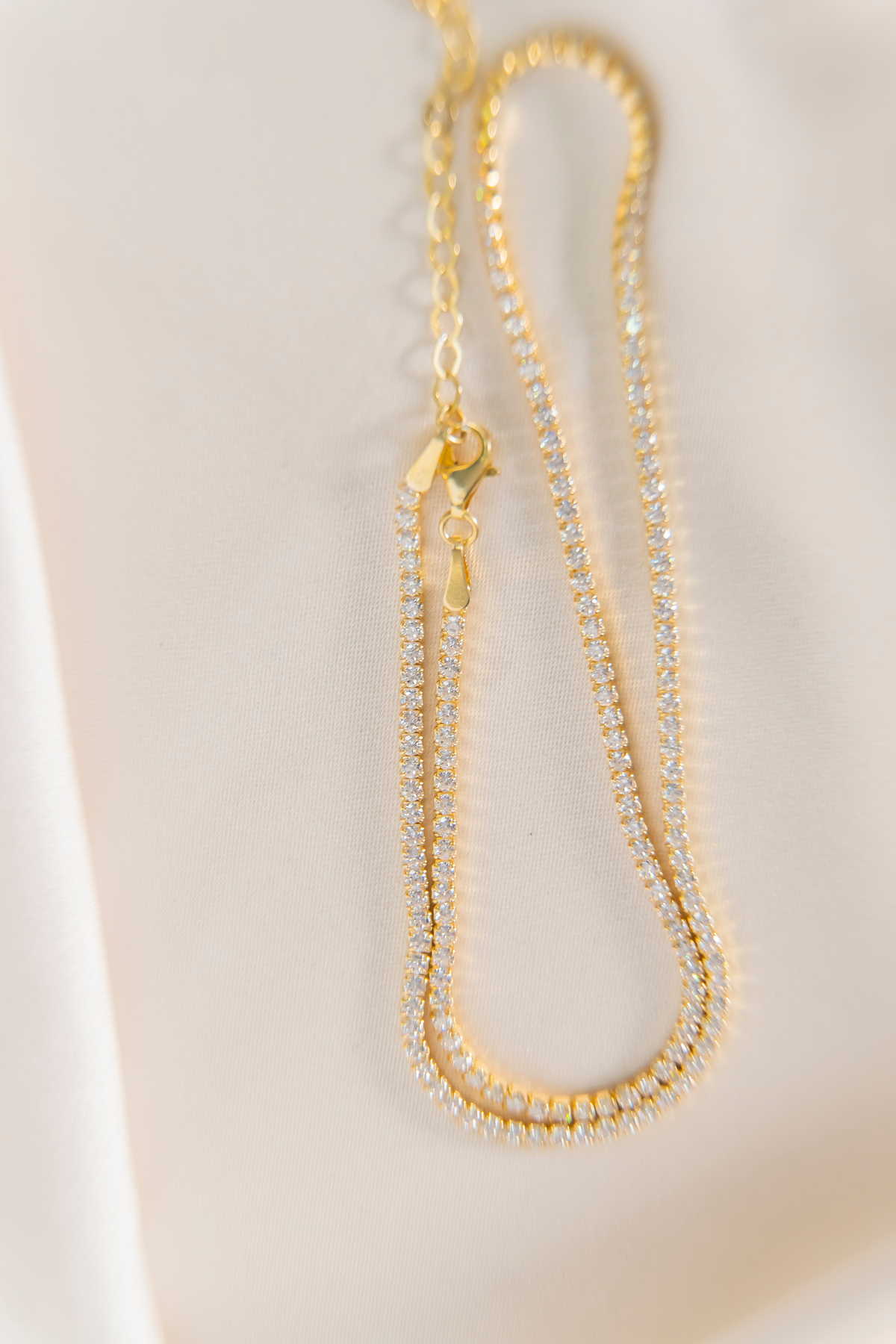 Zirkon Taşlı Su Yolu Kolye, Gold Kaplama 925 Ayar Gümüş Su Yolu Kolye