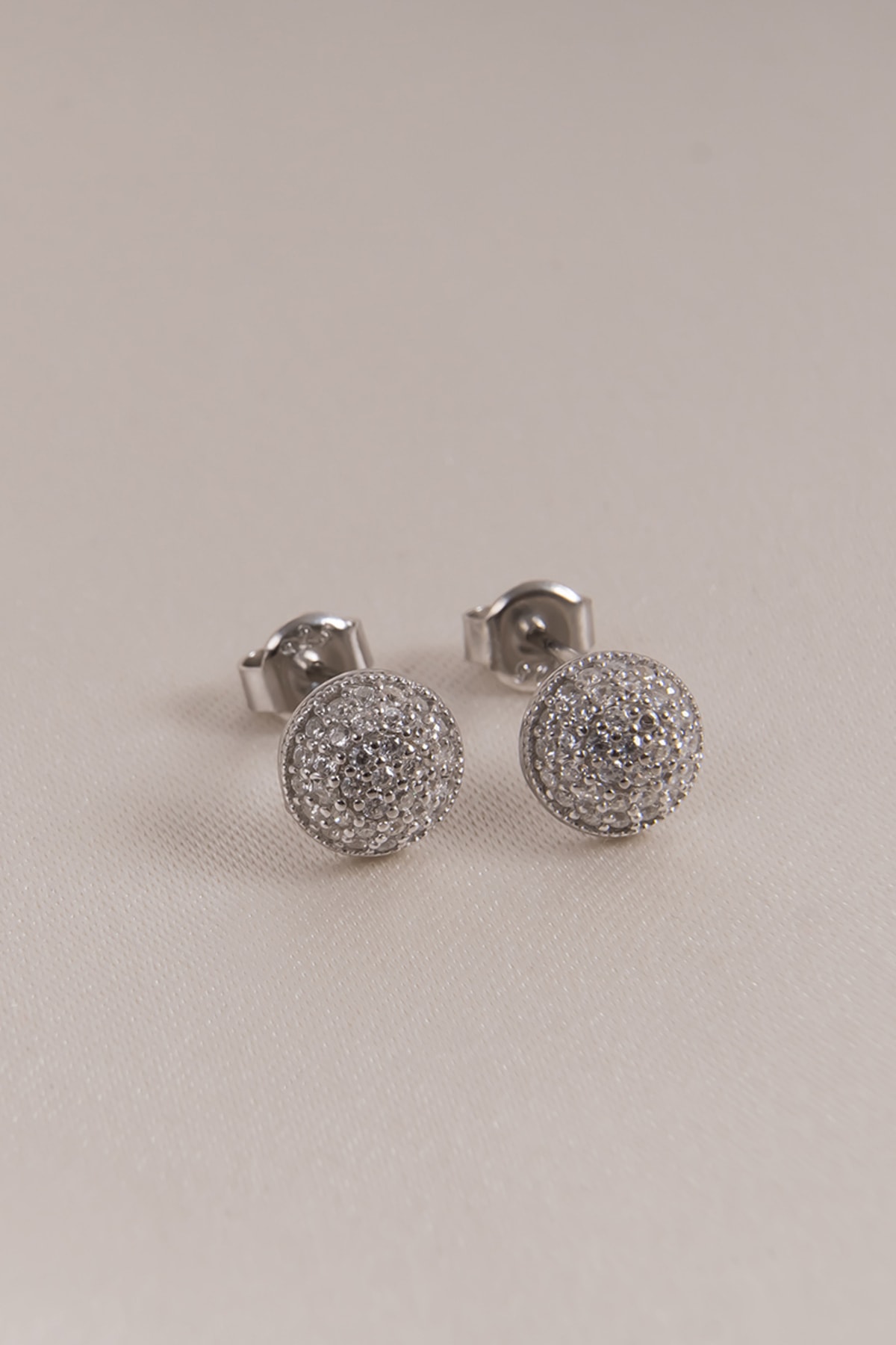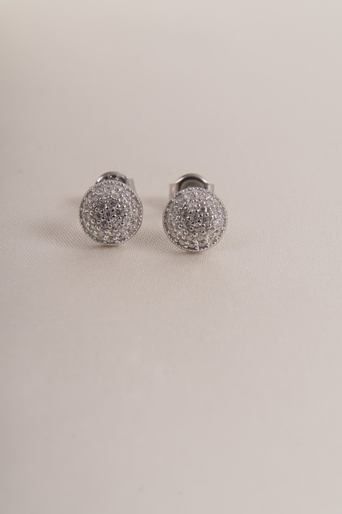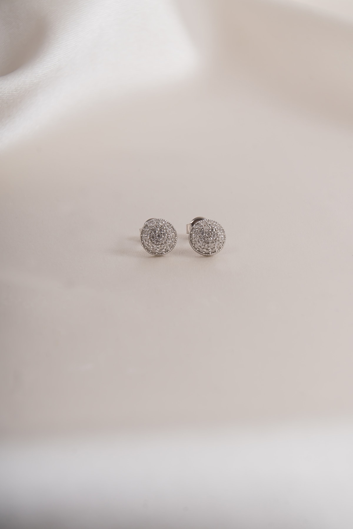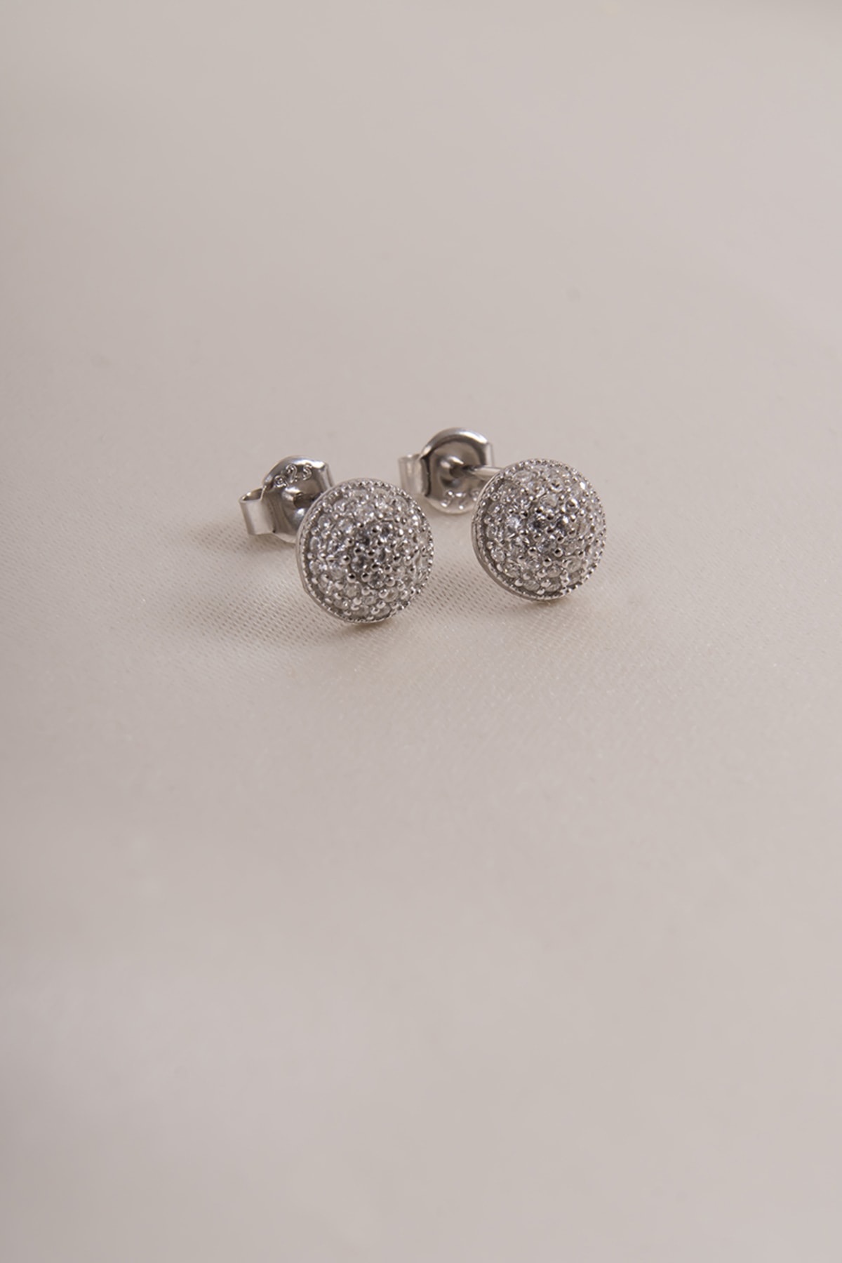 Zirkon Taşlı Yuvarlak Küpe Anti Alerjik Silver 925 Ayar Gümüş